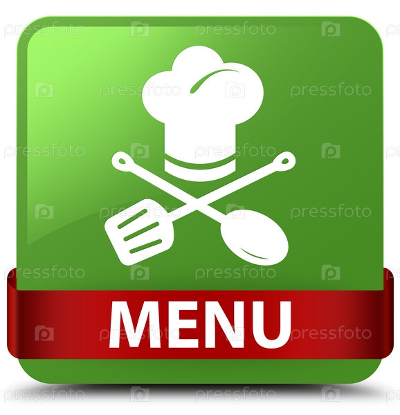 Меню (икона ресторана) мягкий зеленый квадратный кнопка красная лента посередине