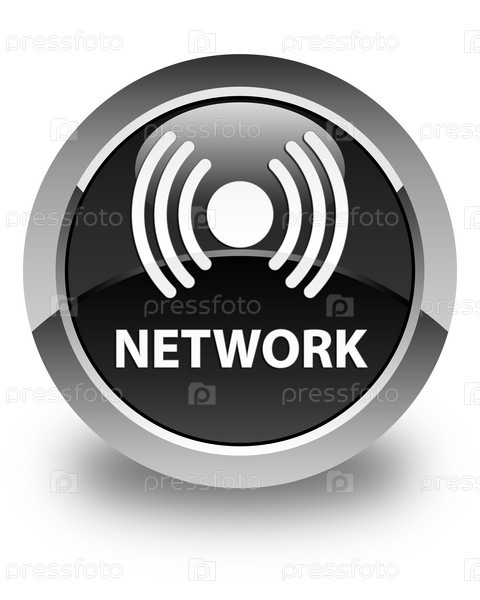 Сеть (икона сигнала) глянцевая черная круглая кнопка