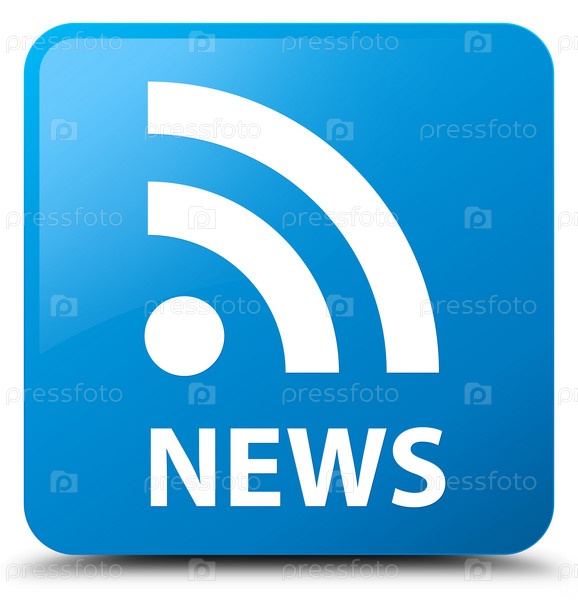 Новости (икона RSS) Сияново-синяя квадратная кнопка