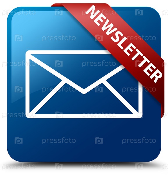 Информационный бюллетень синяя квадратная кнопка красная лента в углу