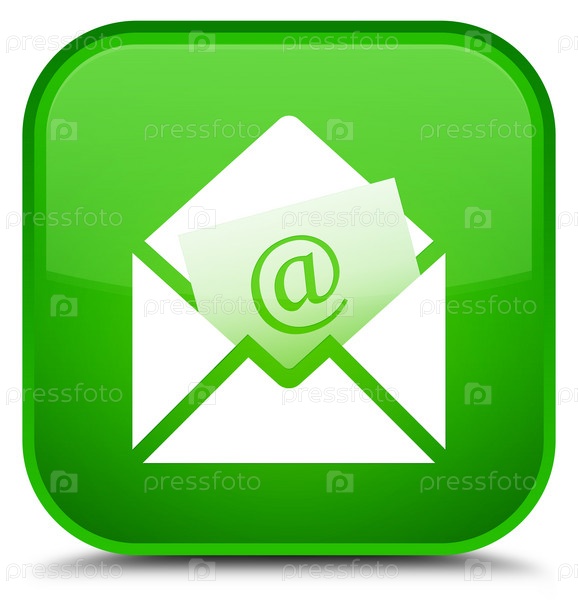 Иконка электронной почты для рассылки новостей специальная зеленая квадратная кнопка