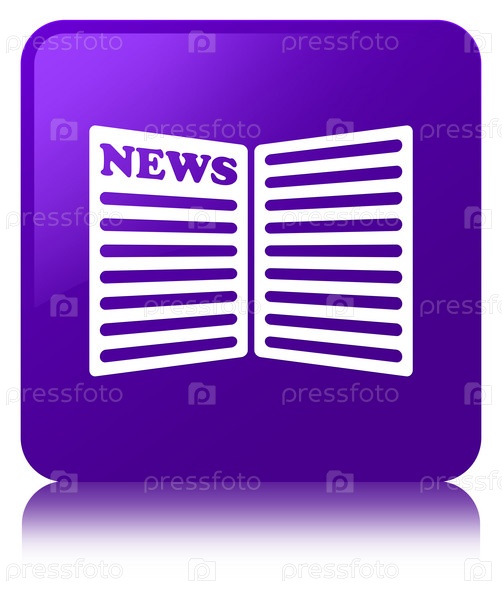 Икона газеты фиолетовая квадратная кнопка