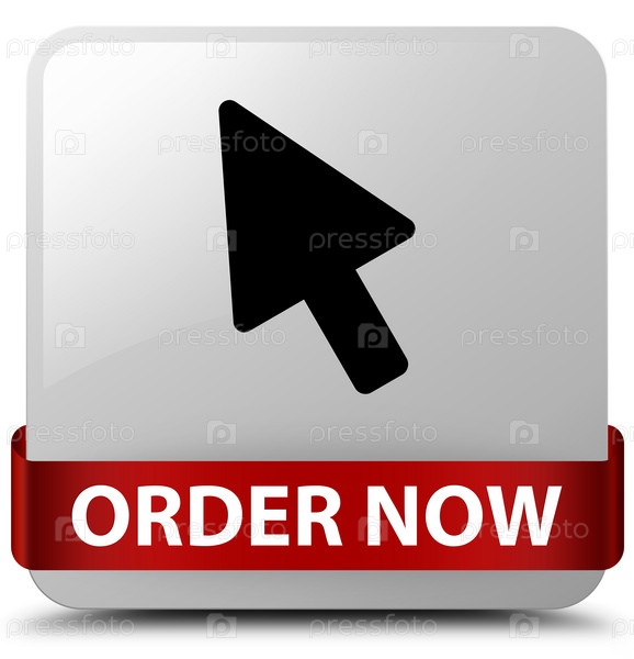 Заказать сейчас (икона курсора) белая квадратная кнопка красная лента посередине