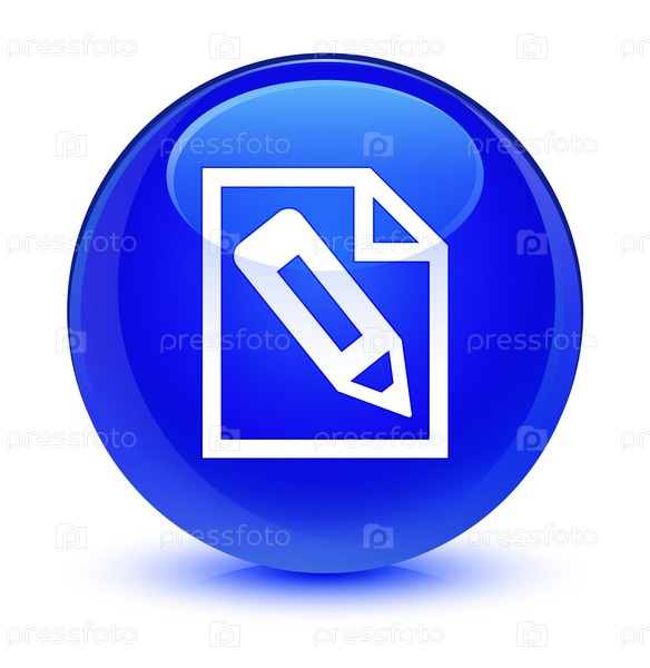 Карандаш в странице икона стеклянный синий круглый кнопка