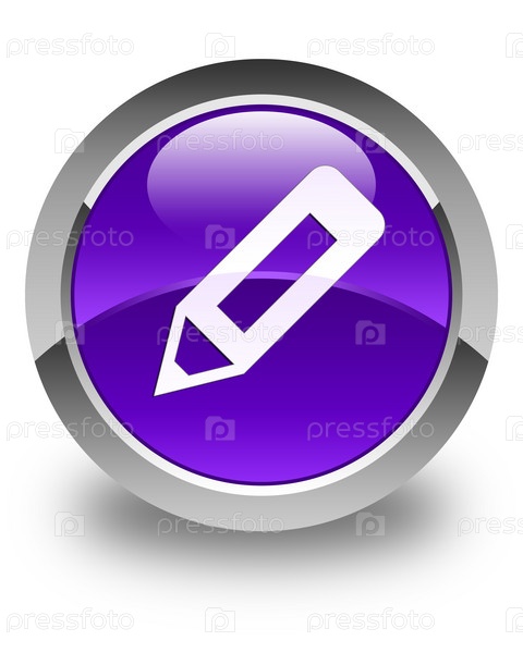 Икона карандаша блестящая фиолетовая круглая кнопка