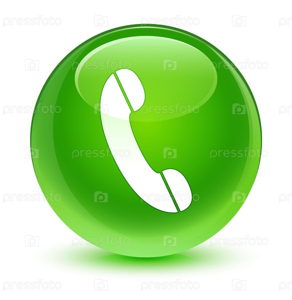 Икона телефона стеклянная зеленая круглая кнопка