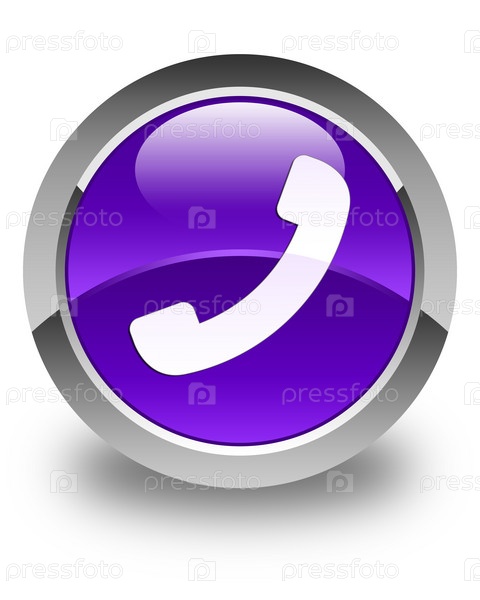Икона телефона блестящая фиолетовая круглая кнопка