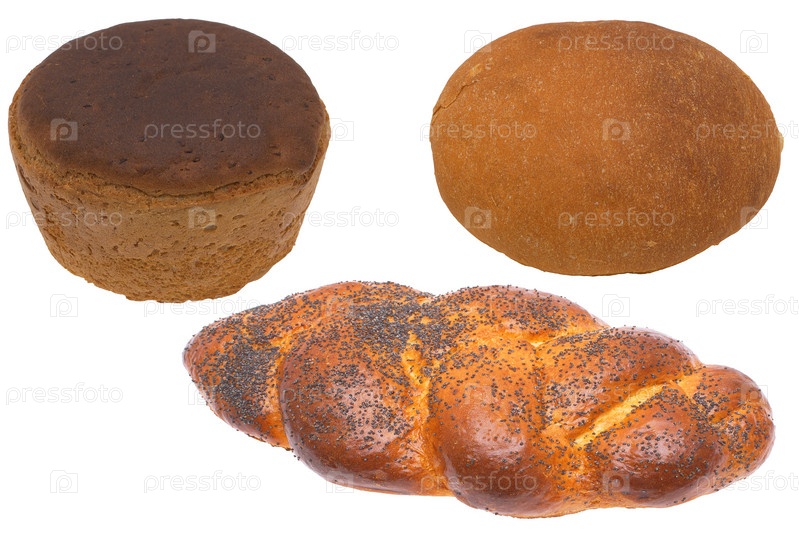 Три вида хлеба на белом фоне