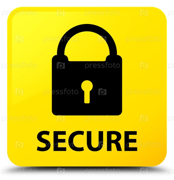 Безопасно (икона замка) жёлтая квадратная кнопка