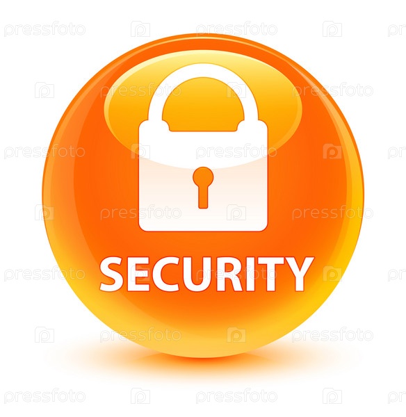 Безопасность (икона замка) оранжевая круглая кнопка