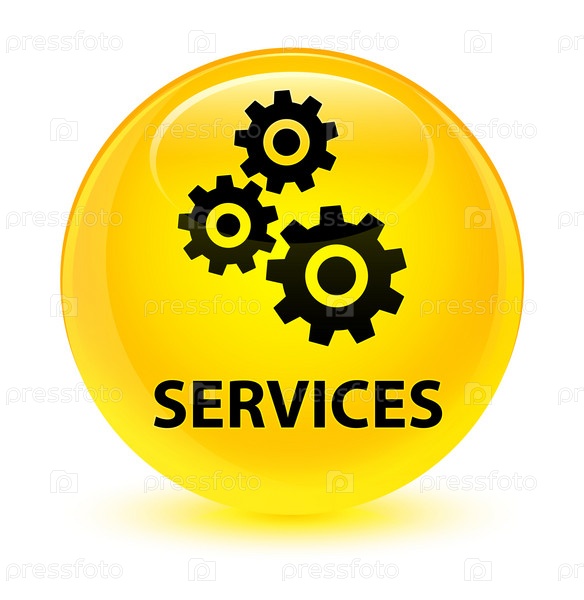 Услуги (икона передач) стеклянная желтая круглая кнопка