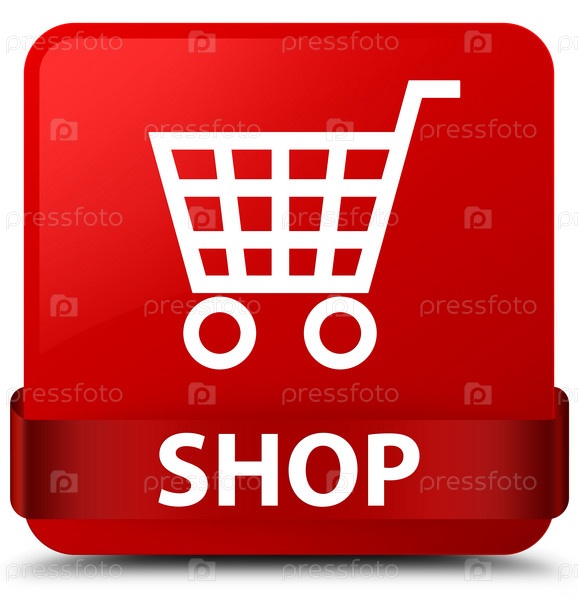 Магазин красный квадратный кнопка красная лента посередине