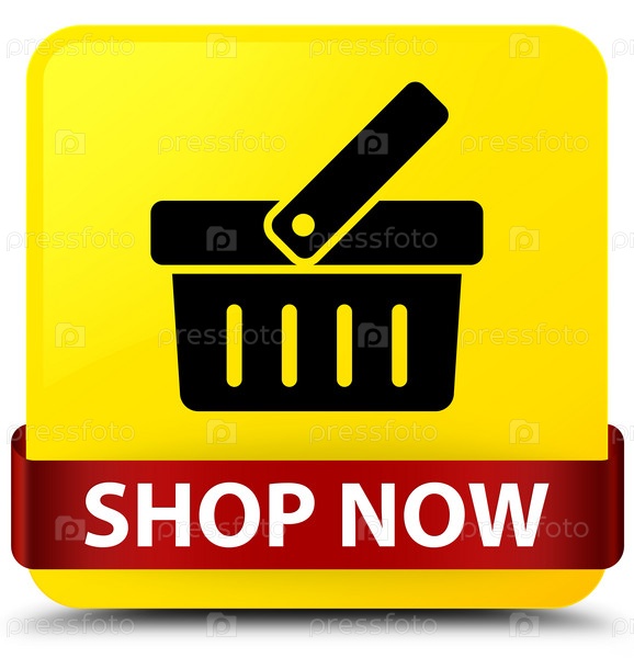 Покупайте сейчас желтый квадратный кнопка красная лента посередине