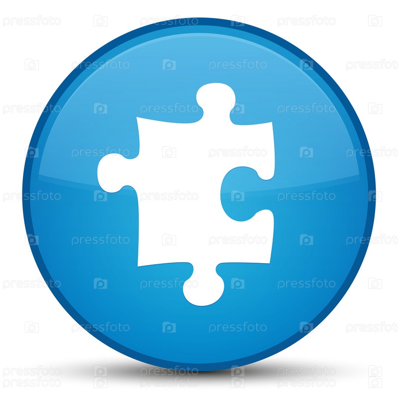 Икона головоломки специальная цыано-синяя круглая кнопка