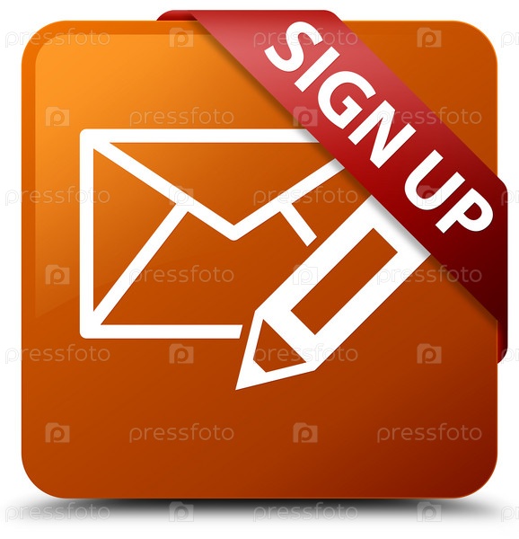Sign up (edit mail icon) коричневая квадратная кнопка красная лента в углу