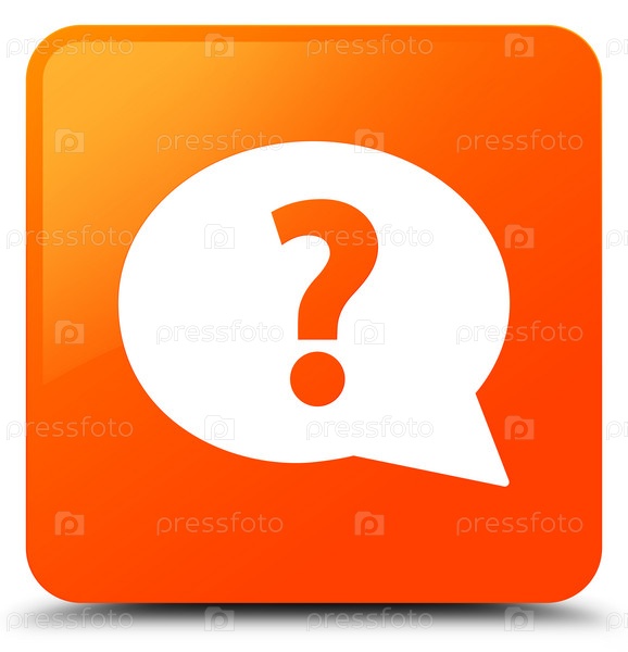 Вопросительный знак икона пузырька оранжевая квадратная кнопка