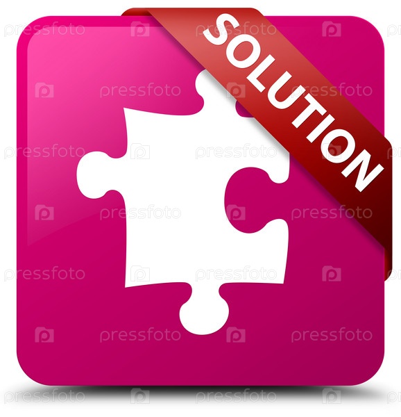 Решение (икона головоломки) розовая квадратная кнопка красная лента в углу