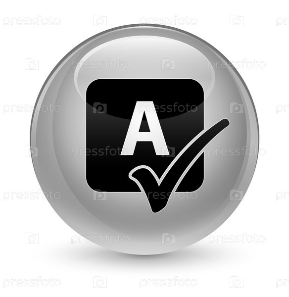 Икона проверки орфографии стеклянная белая круглая кнопка