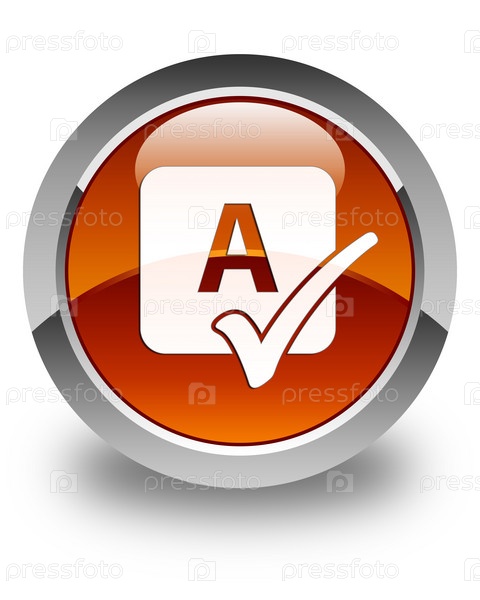 Икона проверки правописания блестящая коричневая круглая кнопка