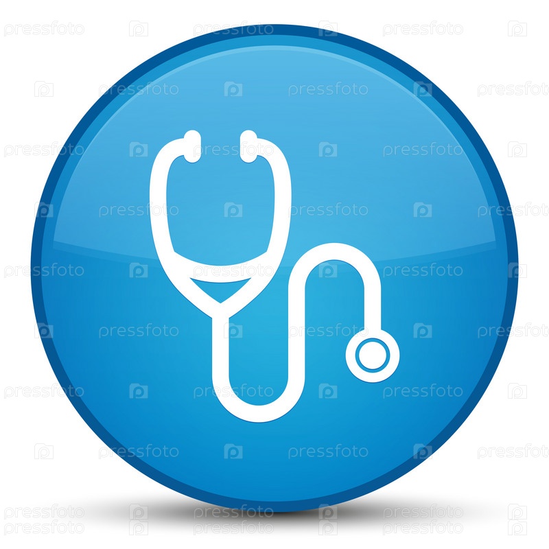 Икона стетоскопа специальная синяя цианская голубая круглая кнопка