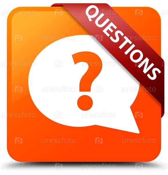 Вопросы (икона пузыря) оранжевая квадратная кнопка красная лента в углу