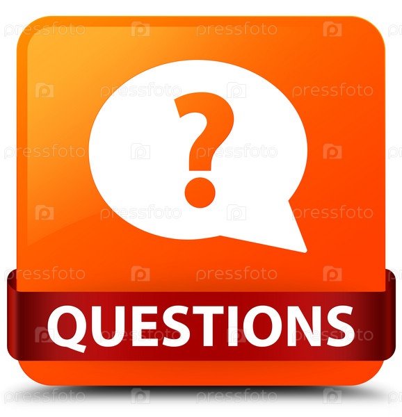 Вопросы (икона пузыря) оранжевая квадратная кнопка красная лента посередине
