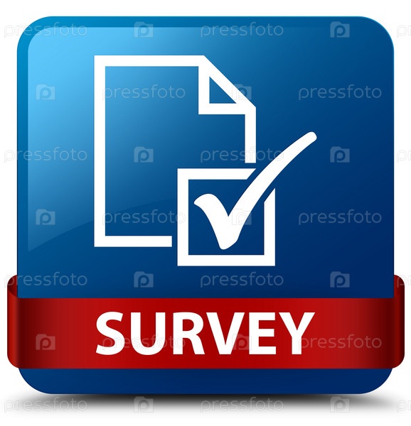 Опрос синий квадратный кнопка красная лента в середине