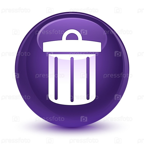 Икона корзины для утилизации стеклянная фиолетовая круглая кнопка