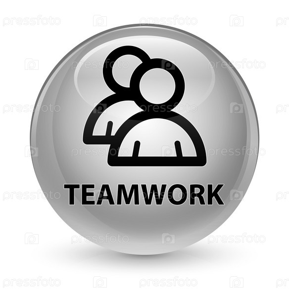 Командная работа (икона группы) стеклянная белая круглая кнопка