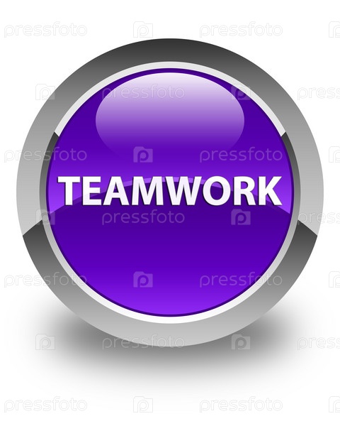 Командная работа глянцевая фиолетовая круглая кнопка