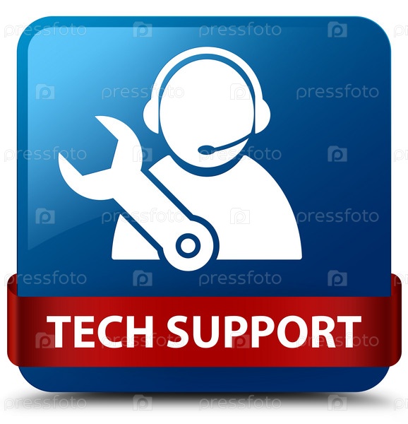 Техническая поддержка синяя квадратная кнопка красная лента посередине