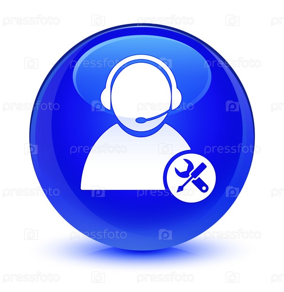 Икона поддержки стеклянной синей круглой кнопки Tech