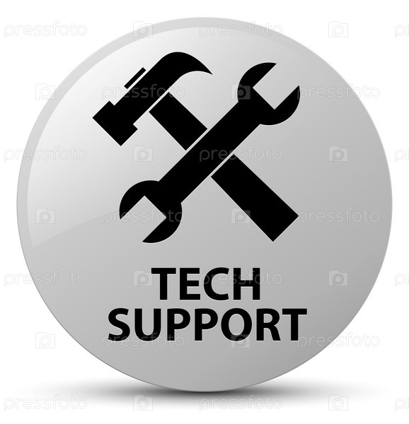 Техническая поддержка (икона инструментов) белая круглая кнопка