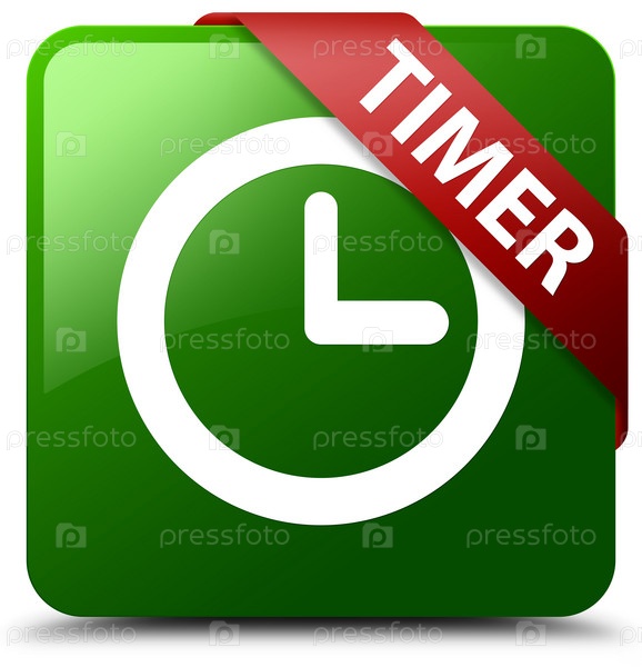 Таймер зеленый квадратный кнопка красная лента в углу