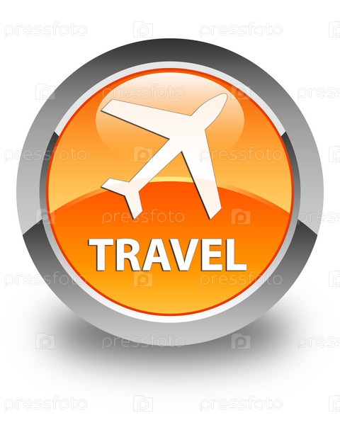 Путешествие (икона самолета) блестящая оранжевая круглая кнопка