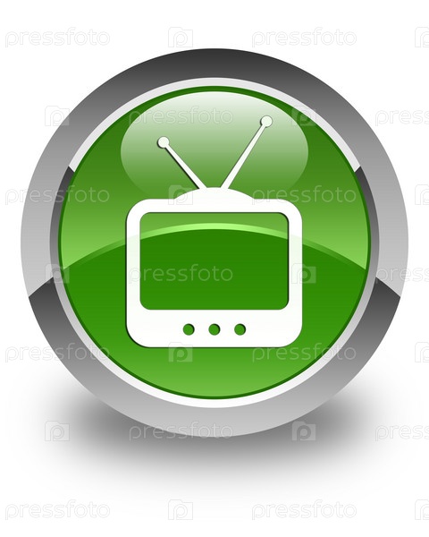 Икона телевизора глянцевая мягкая зеленая круглая кнопка