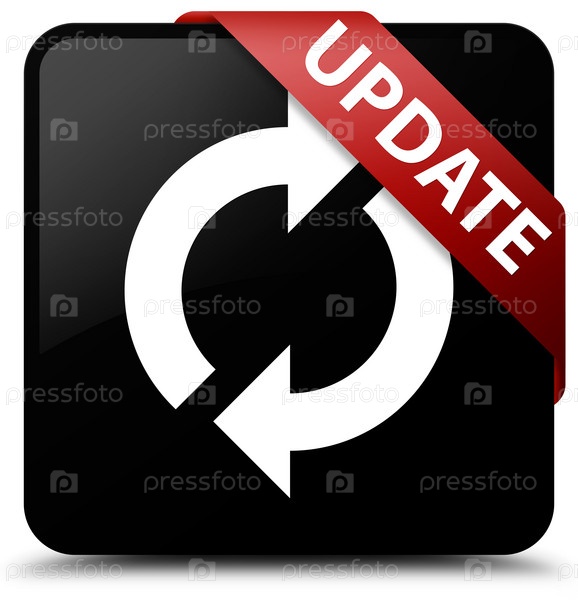 Черная квадратная кнопка красная лента в углу Update