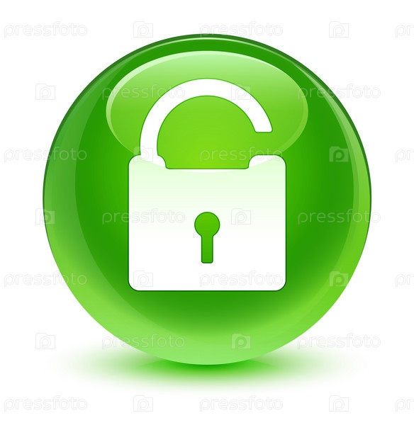 Разблокировать иконку стеклянной зеленой круглой кнопкой