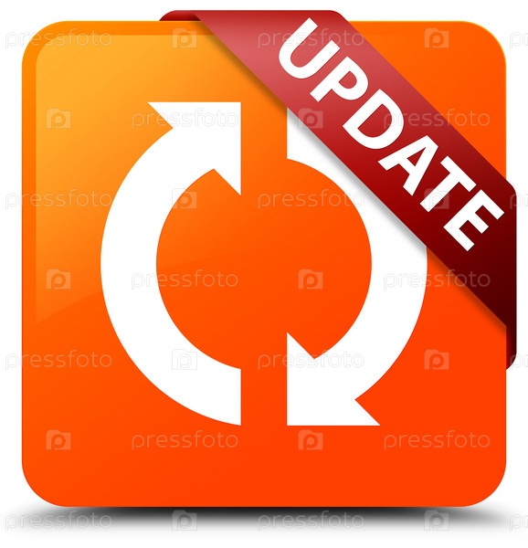 Обновление оранжевой квадратной кнопки красной ленты в углу