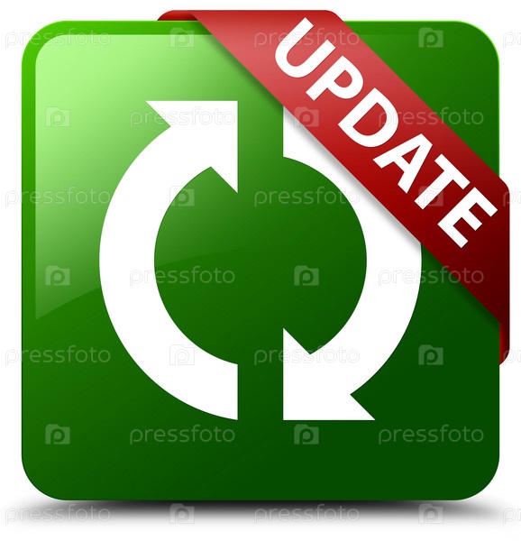Зеленый квадратный кнопка красная лента в углу Обновление