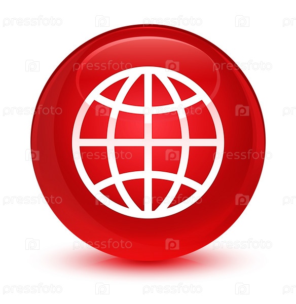 Мировая икона стеклянной красной круглой кнопки