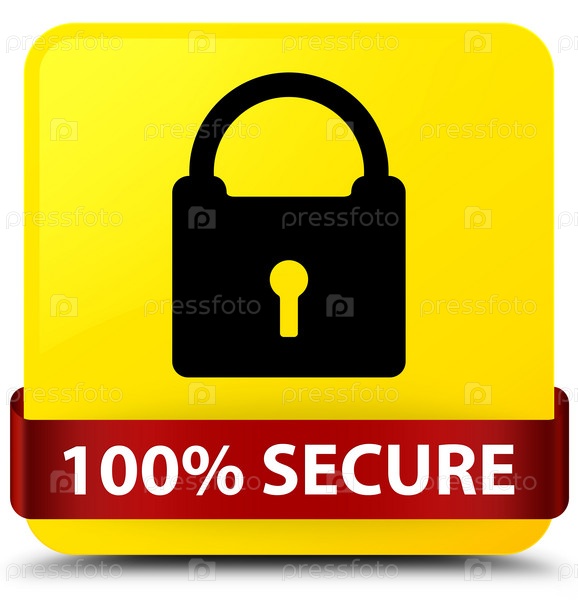 100% безопасно жёлтый квадратный кнопка красная лента посередине