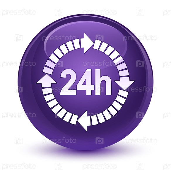 Икона доставки в течение 24 часов стеклянная фиолетовая круглая кнопка