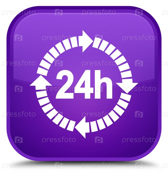 Икона доставки в течение 24 часов специальная фиолетовая квадратная кнопка