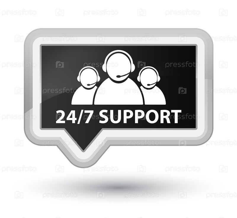 Поддержка 24/7 (икона команды по уходу за клиентами) первичная черная баннерная кнопка