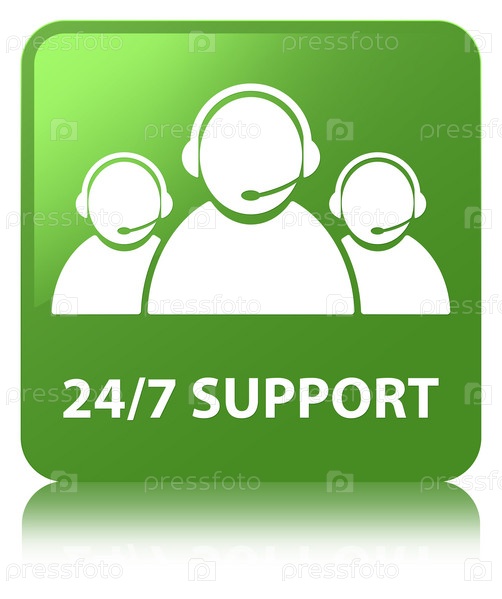 Поддержка 24/7 (икона команды по уходу за клиентами) мягкая зеленая квадратная кнопка