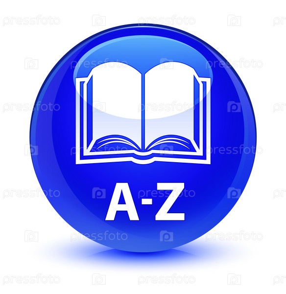 A-Z (икона книги) стеклянная голубая круглая кнопка