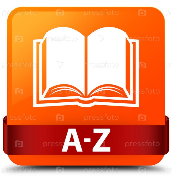 A-Z (икона книги) оранжевая квадратная кнопка красная лента посередине