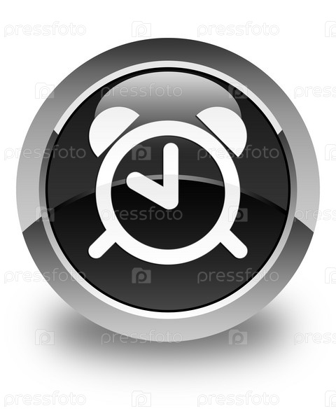 Икона будильника глянцевая черная круглая кнопка
