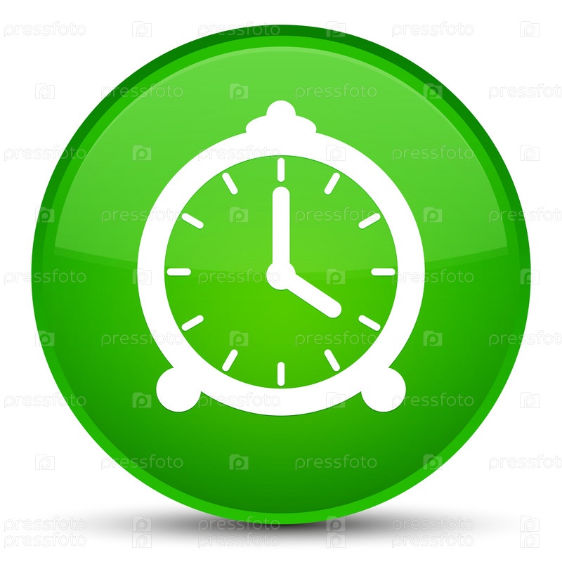 Икона будильника специальная зеленая круглая кнопка